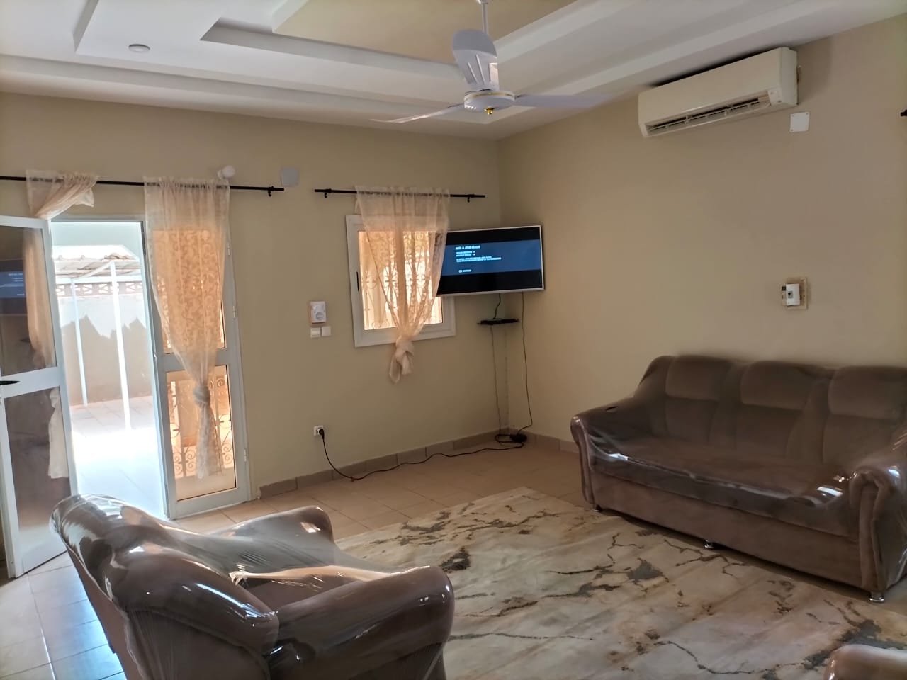 Cette maison est construite dans 400m2 dans le quartier Bobial non loin de station Total, avec 4 chambre, 1 douche interne et externe, avec brachement eau et courant.